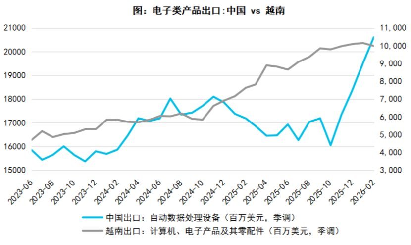 其一,对美出口虽暂时呈现负增长,但“转口链”展现出较强韧性。2026 年开年,转口贸易成为中国出口超预期的关键支撑,尤其通过香港、新加坡两大国际中转港,有效规避区域贸易壁垒,放大外需对出口的拉动,印证了转口贸易的结构性韧性。
